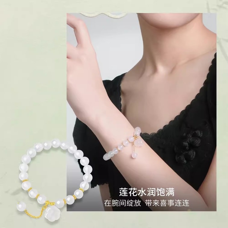 手串采用玉髓珠串连颗颗圆润饱满,水润通透