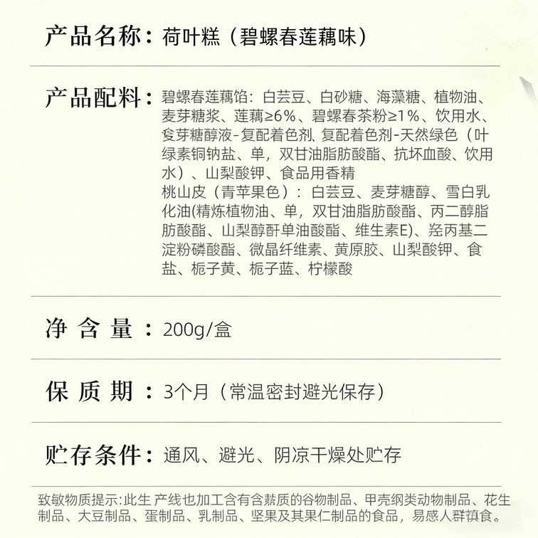 【中国直邮】 乾生元 荷叶糕 碧螺春莲藕味 荷塘月色精致糕点心 中华老字号 苏州特产礼盒伴手礼 早点下午茶 200g 1盒