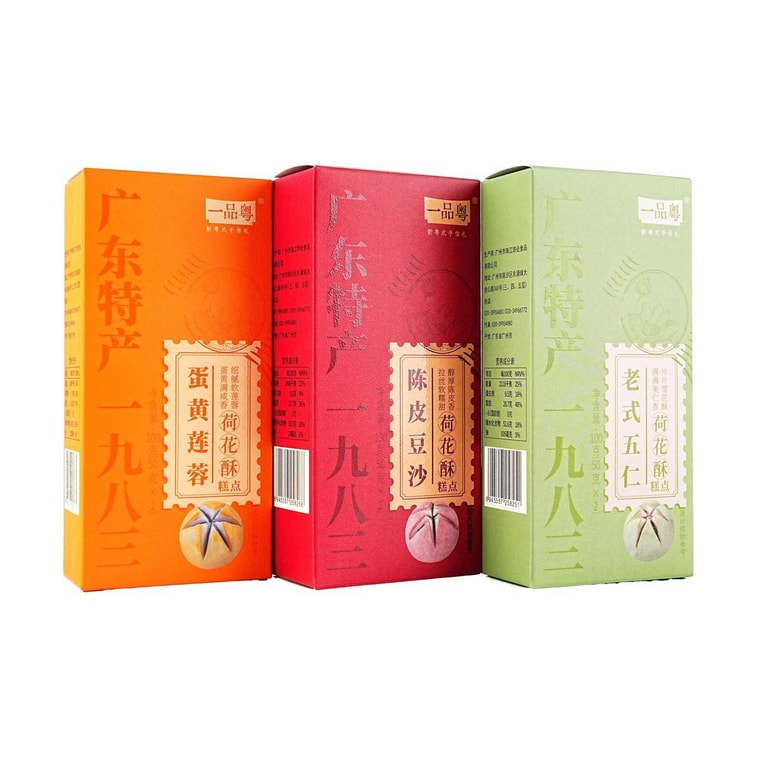 一品粤 花城献礼 荷花酥糕点礼盒 蛋黄莲蓉味+陈皮豆沙味+老式五仁味 6枚入 300g【春节年货必买】【广东特产点心伴手礼】