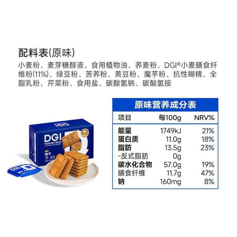 【中国直邮】 DGI 低糖饼干 无糖精营养全麦零食 减脂餐粗粮代餐饱腹早餐食品 原味180g