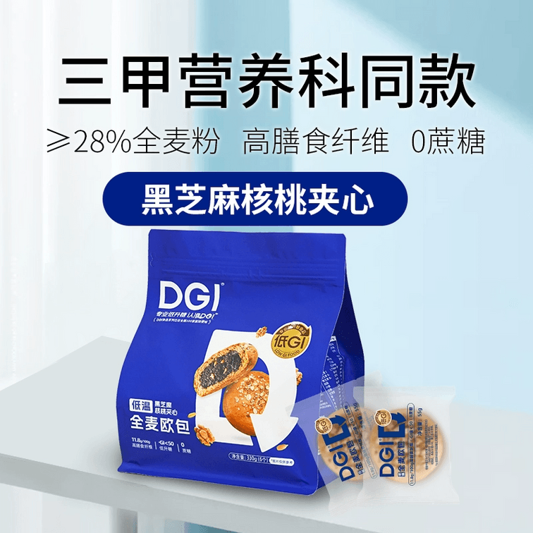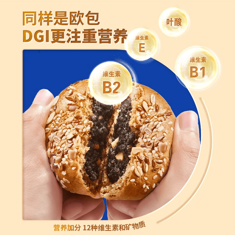 【中国直邮】 DGI 低升糖 黑芝麻核桃夹心欧包 糖友健康代餐 营养早餐 1大包