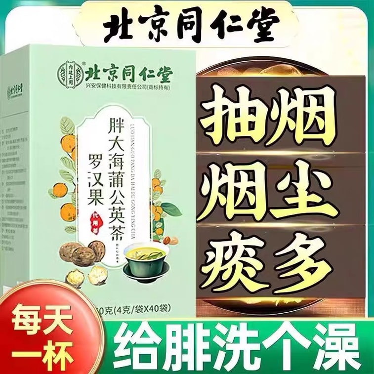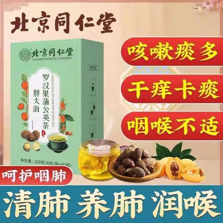 北京同仁堂 胖大海罗汉果蒲公英养生茶 含枸杞菊花金银花甘草新会陈皮 清热解毒 40袋 160g 下架