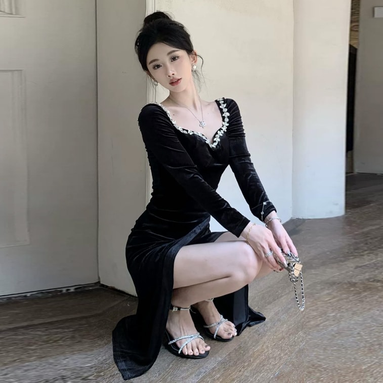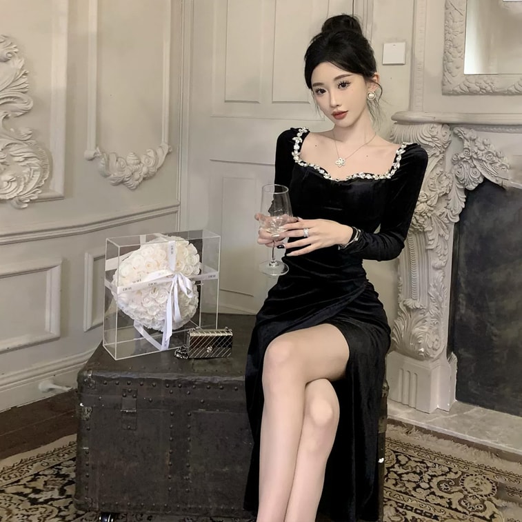 丝绒材质 + 珍珠装饰,轻奢质感显高级