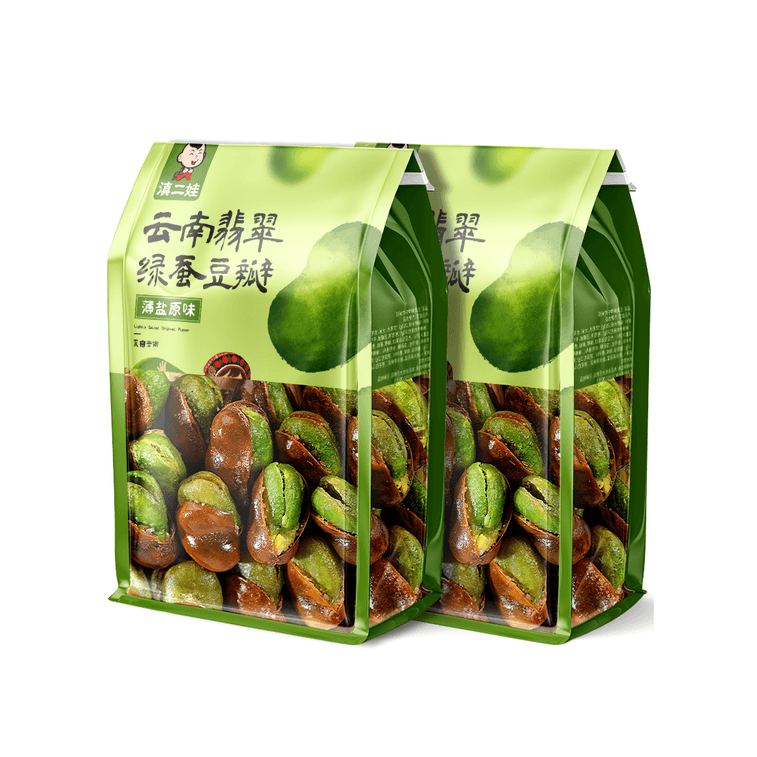 【中国直邮】 滇二娃 绿心蚕豆瓣 经典原味 & 麻辣牛肉味 258g*2袋 云南特产保山胡豆兰花豆坚果休闲零食小吃下酒菜
