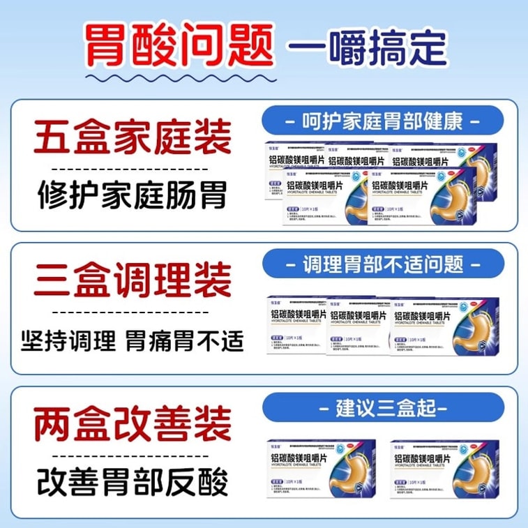【中国直邮】 恒玉佳 铝碳酸镁咀嚼片 胃痛胃酸胃灼痛胃炎药治疗幽门螺旋杆菌 10片/盒