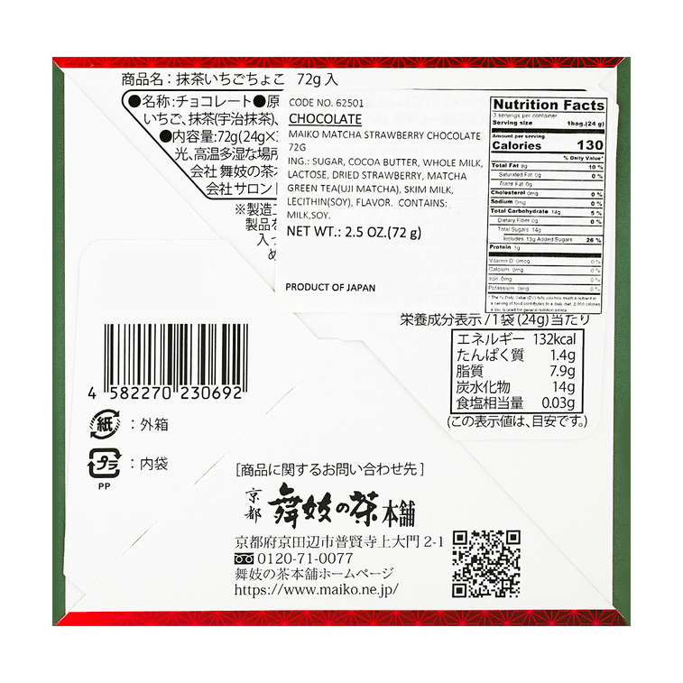 日本MAIKOTEA舞妓茶本铺 草莓夹心抹茶巧克力 72g【整粒草莓】