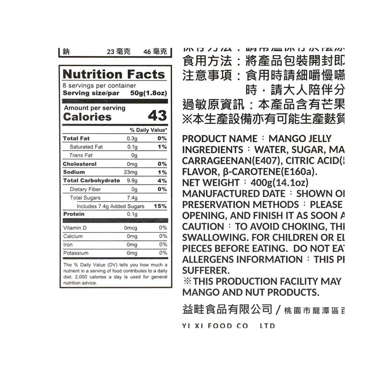 台湾小山等露 芒果冻 水果果冻 8枚 400g