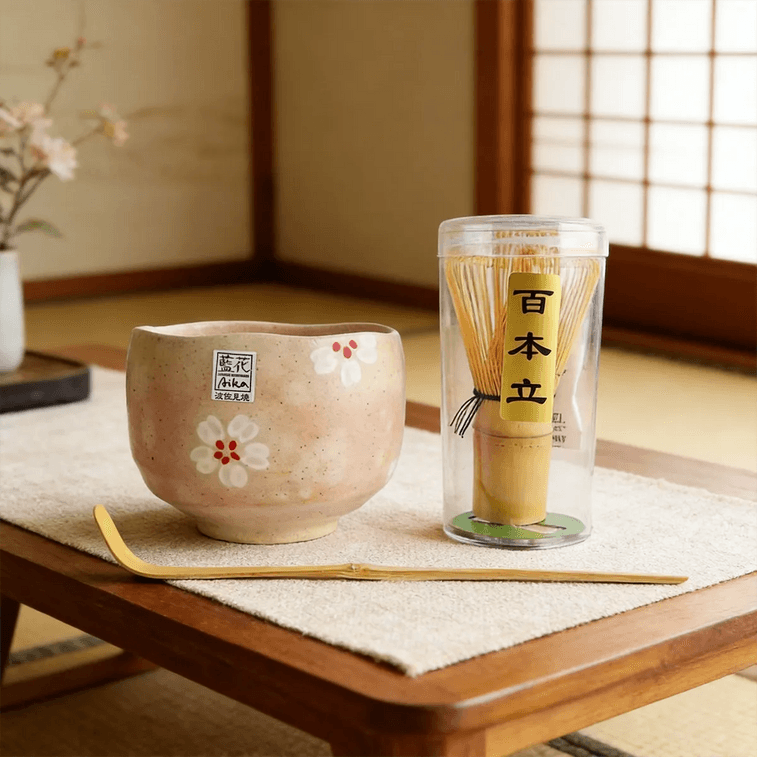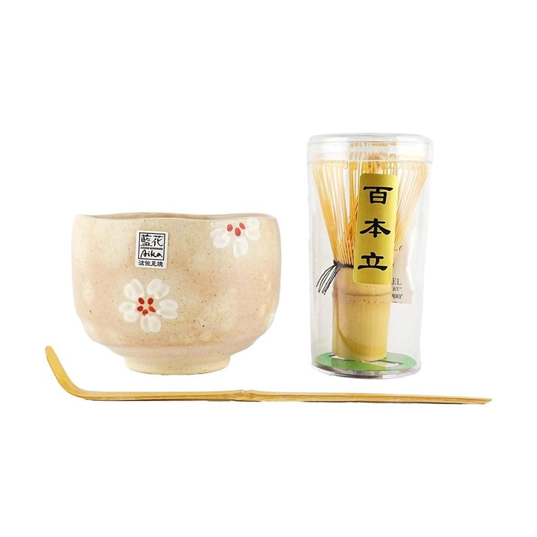 日本藍花 抹茶三件套 抹茶碗茶筅茶勺茶立 礼盒装 樱花装饰釉 | 亚米