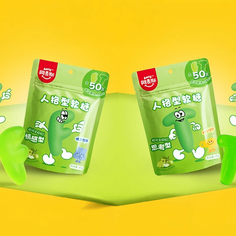 AMOS阿麦斯 MBTI人格测试软糖 字母T&F型 白葡萄&青苹果味 45g【含50%真实果汁】【趣味橡皮糖】【包装随机发】
