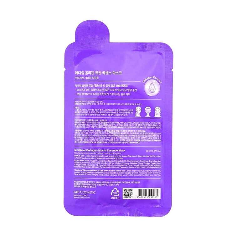 韩国MEDIHEAL美迪惠尔 可莱丝胶原蛋白精华面膜 5片/盒 嘭弹水润少女肌 透亮抗初老