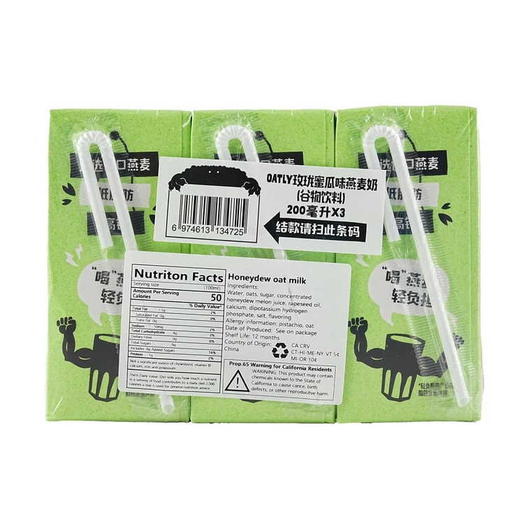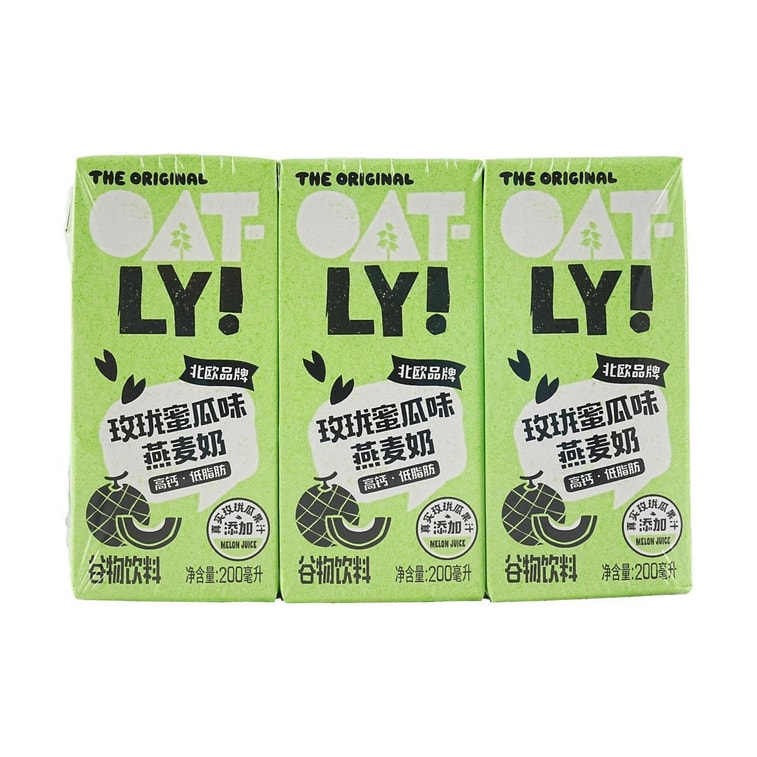 OATLY噢麦力 玫珑蜜瓜味燕麦奶 200ml*3盒【高钙低脂谷物饮料】