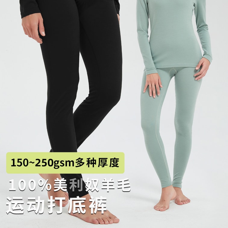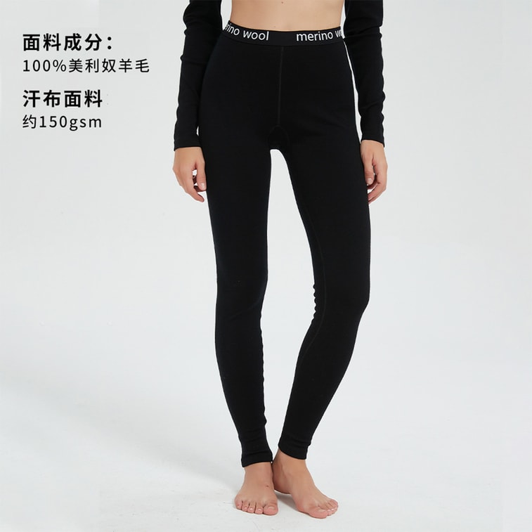 【中国直邮】 HSPM 美利奴羊毛户外速干徒步登山长裤保暖打底秋裤 黑色150gsm(汗布)S