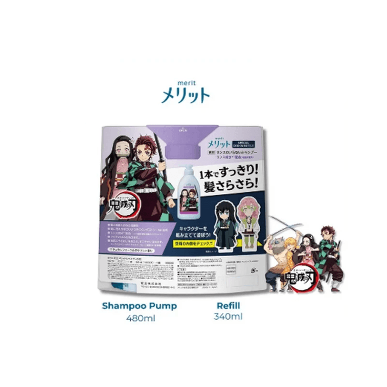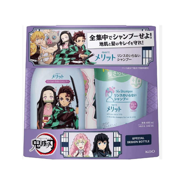 日本 KAO花王 Merit 鬼灭之刃限定款儿童可用无硅油弱酸性洗发套装 480ml+340ml