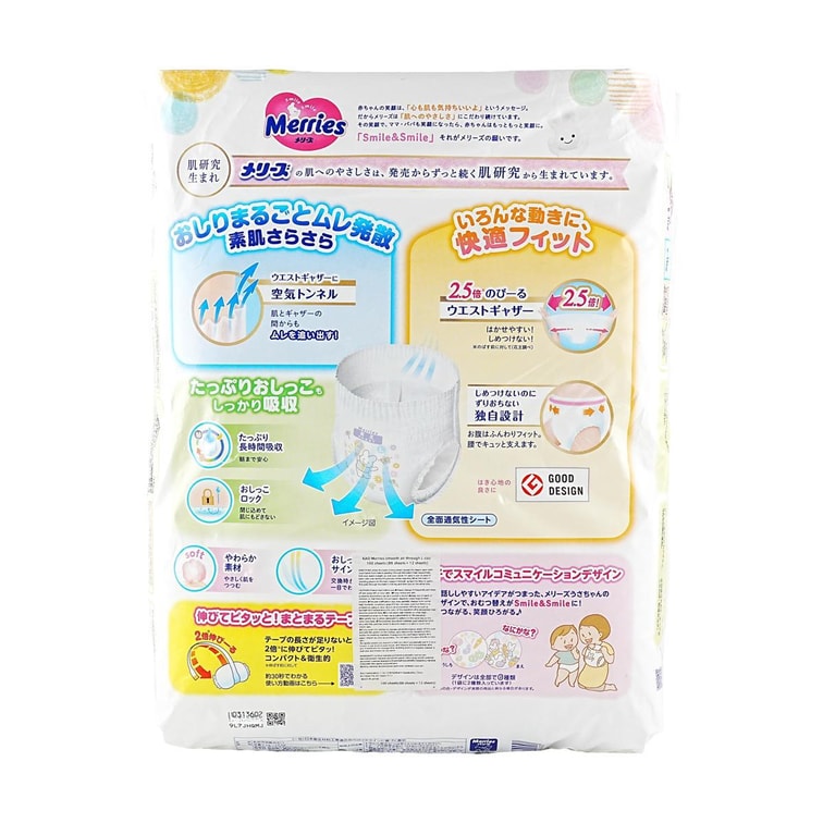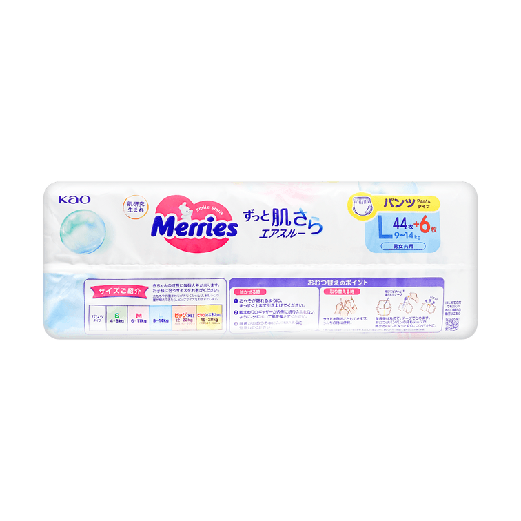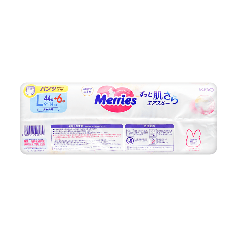 日本KAO花王 拉拉裤 L号 9-14kg 46枚入 MERRIES妙而舒 婴儿学步裤 男女通用 【新旧包装随机发】新版本46片 旧版本50片