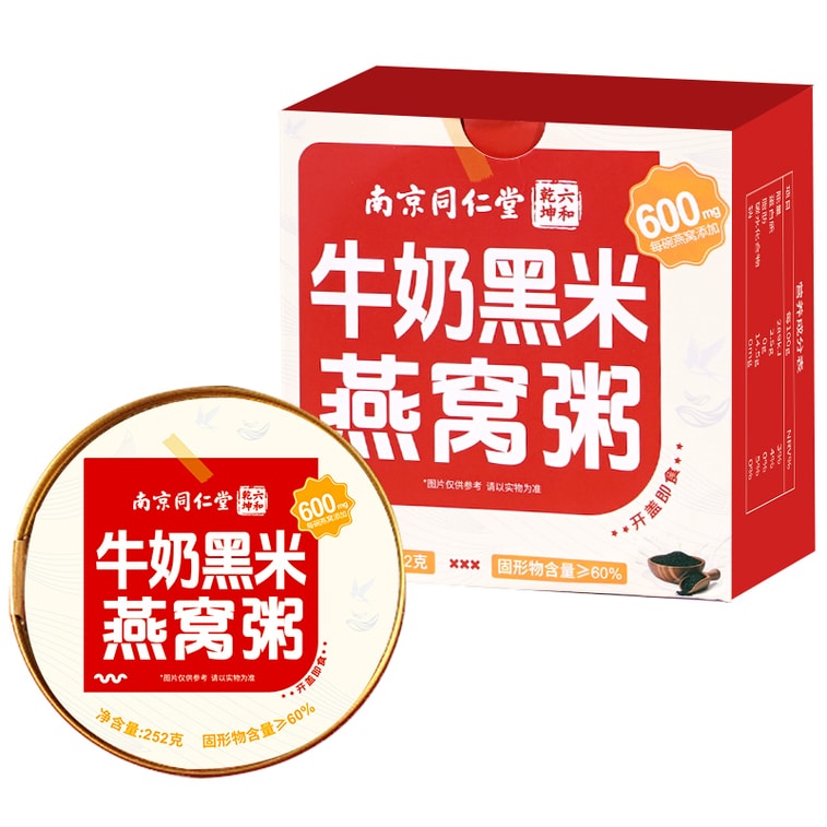 【252g超级大碗+600mg印尼燕窝】南京同仁堂牛奶黑米燕窝粥 252g 即食早餐粥营养品方便速食代餐免煮儿童孕妇可食用方便食品美容养颜健脾养胃