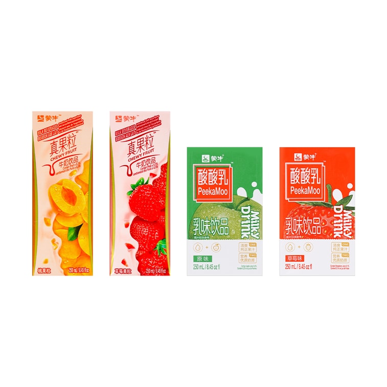 蒙牛 真果粒 草莓&黄桃+酸酸乳 草莓&原味 4种口味畅饮款 250ml*4【4盒组合装】