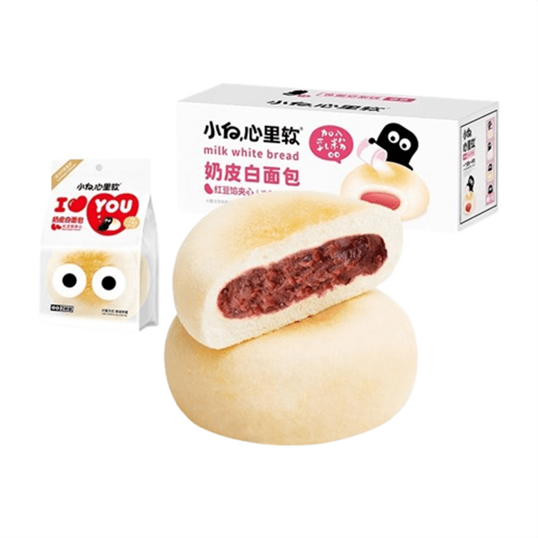 【中国直邮】 小白心里软 奶皮白面包 早餐夹心蛋糕充饥营养小吃 红豆味450g/箱