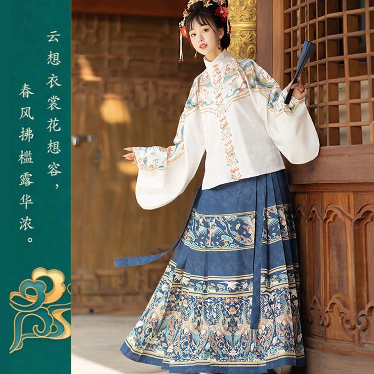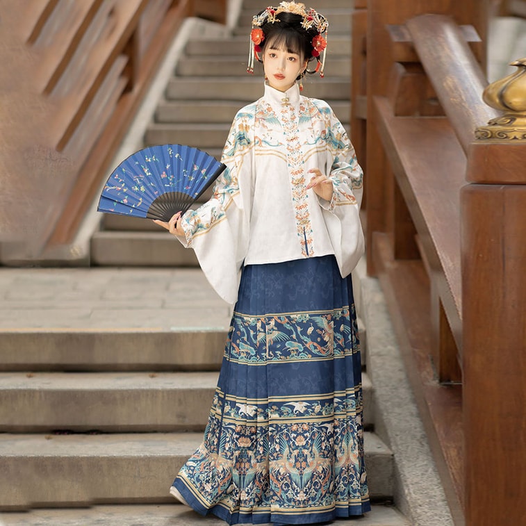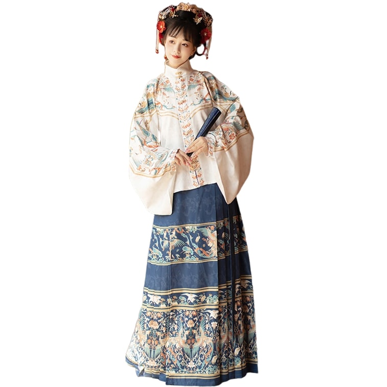 【中国直邮】 HSPM 汉服女明制立领对襟短衫琵琶袖马面裙 白色 L