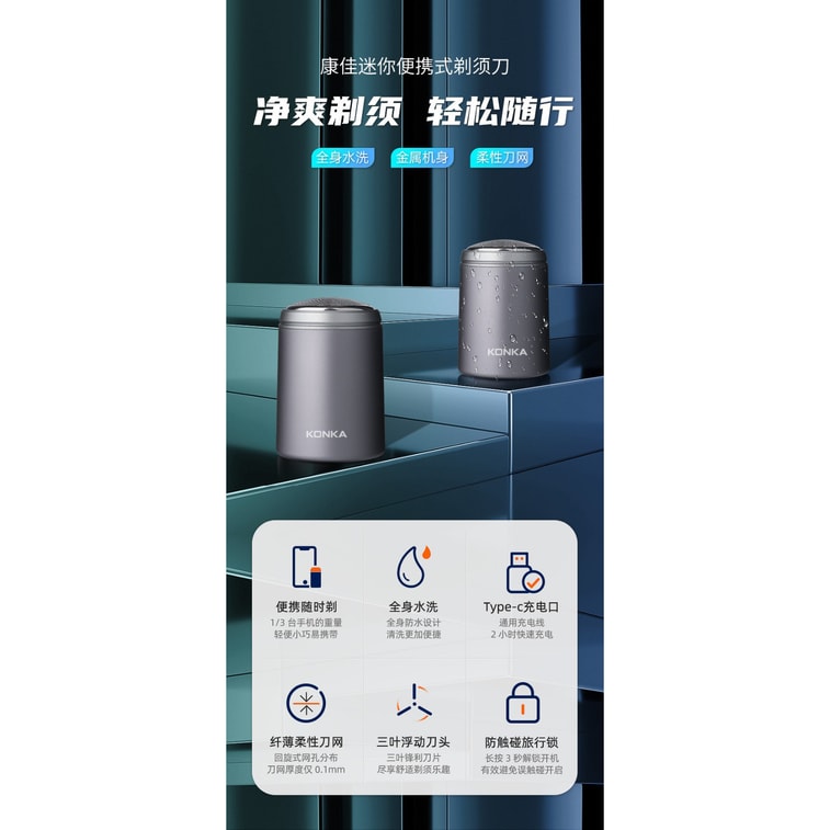 【中国直邮】 康佳 迷你随身防水USB充电剃须刀 黑色