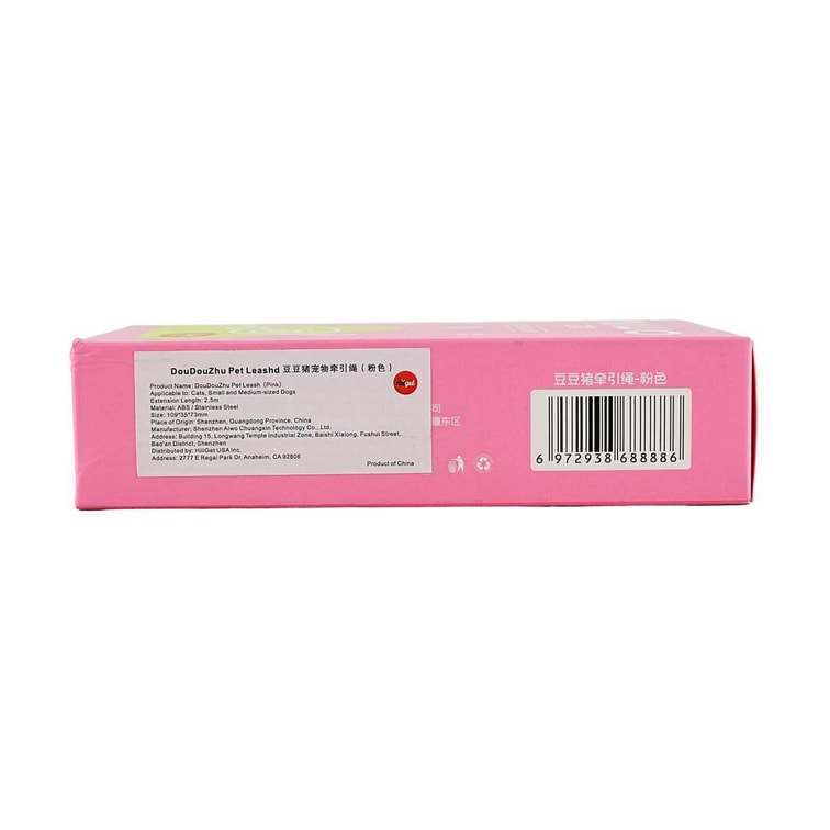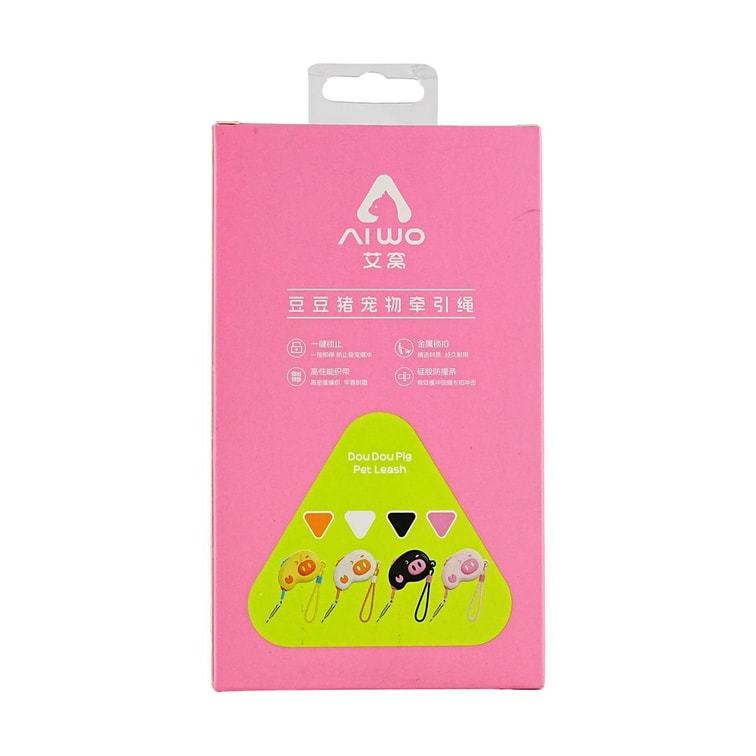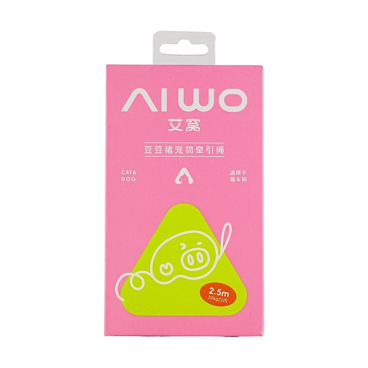 AIWO艾窝 MINI牵引绳 自动伸缩小型犬防爆冲遛狗绳 粉色豆豆猪 2.5米
