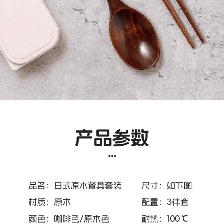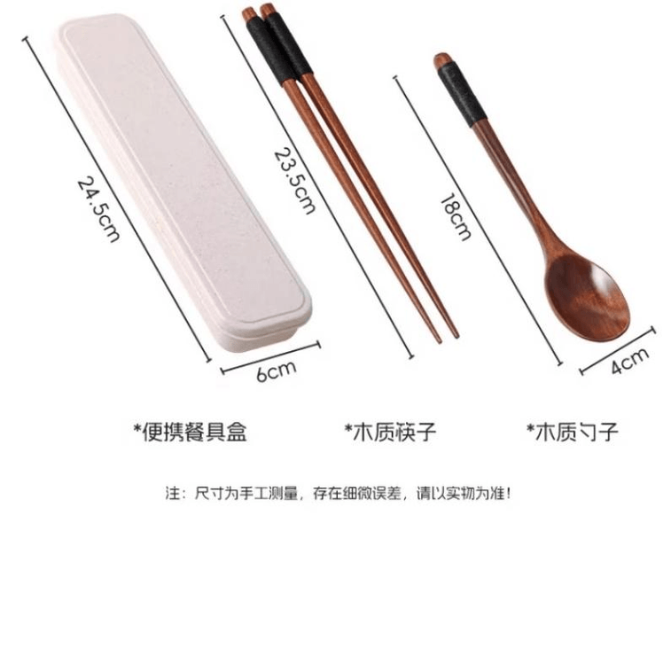 【中国直邮】 日本 HATAKOSEN 名创优品 筷子勺子套装木质一人用便携式餐具三件套 咖啡色23.5cm