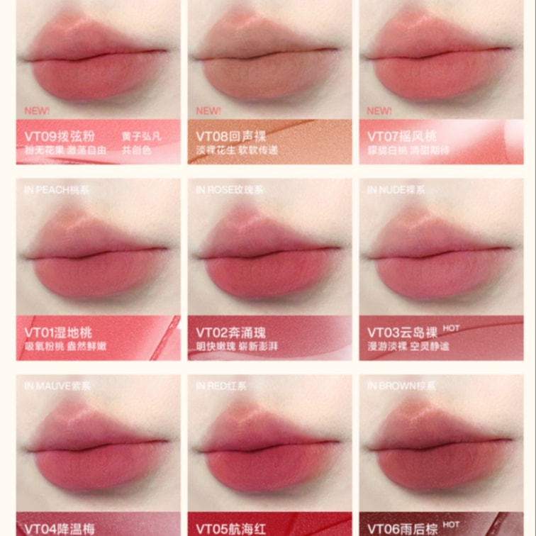 【中国直邮】 心慕与你 镜光丝绒唇釉 不易沾杯 VT06 2.6g 单支装
