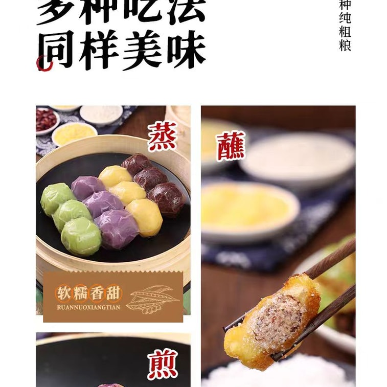 【中国直邮】 邹有才 东北正宗粘豆包黏纯手工小吃无糖精粗粮四色口味低脂大黄米年糕 500g*1袋
