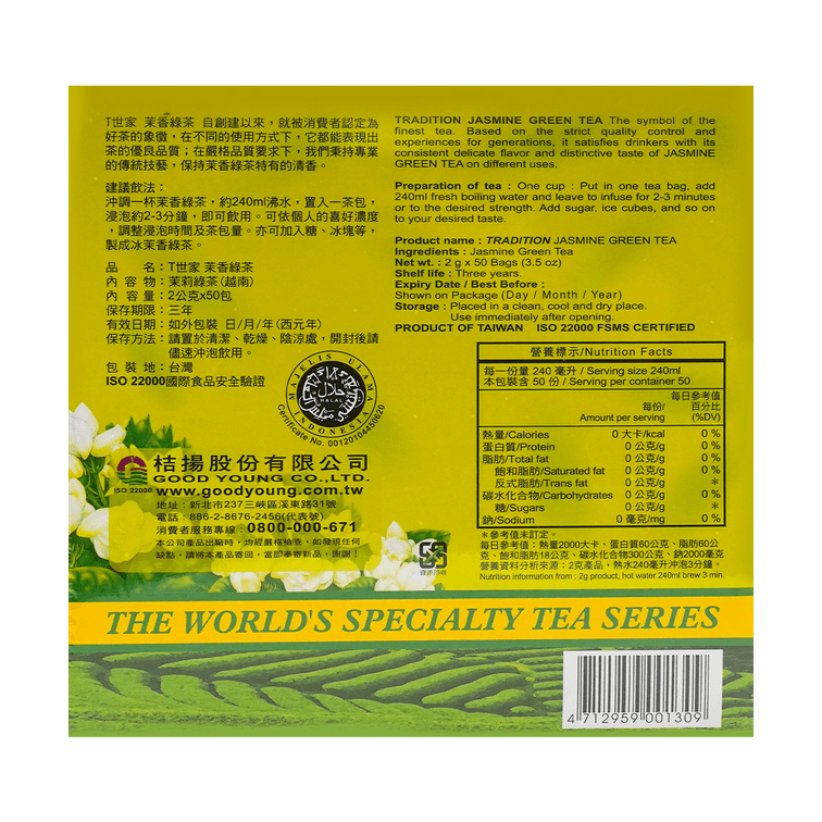 台湾世家 茉香绿茶 冲泡茶包 100g