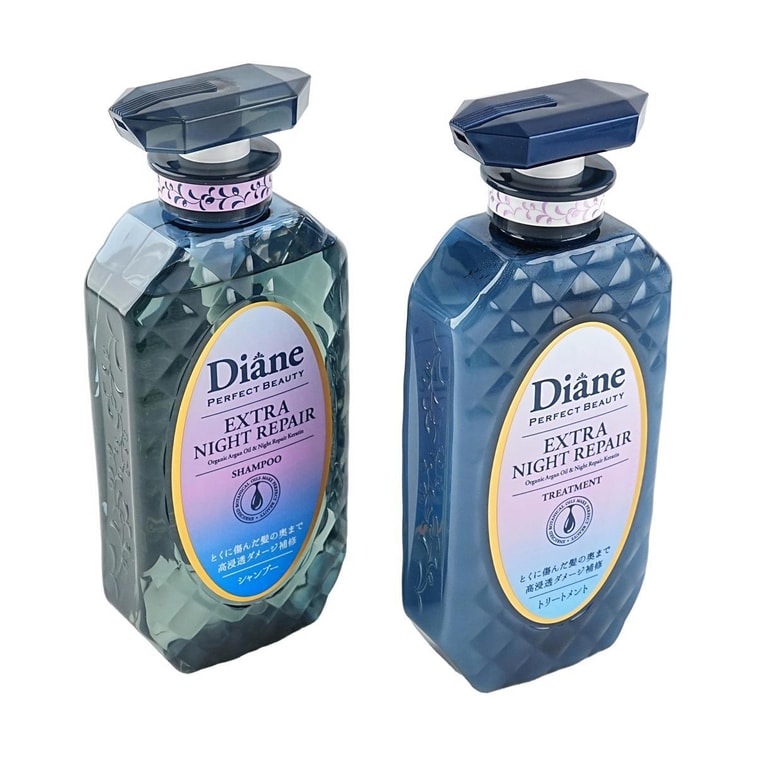日本DIANE黛丝恩 致美夜间修护洗护套装 洗发水450ml + 护发素450ml #午夜莓香 夜间深度柔顺护发 严重受损/分叉打结/晨起易翘乱发质【夜间修护角蛋白限定版】 | 亚米