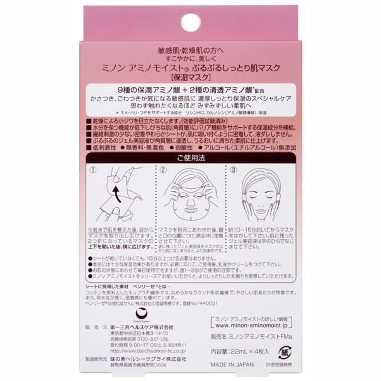 【日本直邮】日本第一三共 MINON氨基酸保湿面膜 敏感肌用 4片入