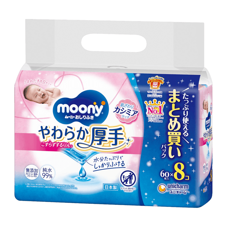 日本UNICHARM尤妮佳 Moony 柔软厚实婴儿湿巾 替换装 60片×8包