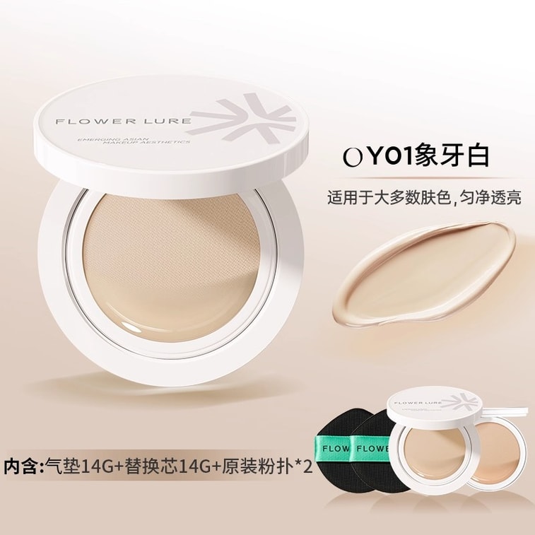 【中国直邮】 花间颂 晨雾贴贴气垫粉底霜 遮瑕持久保湿不脱妆粉底BB霜正品 象牙白 正装+替换装【适合白皮黄皮肤色】