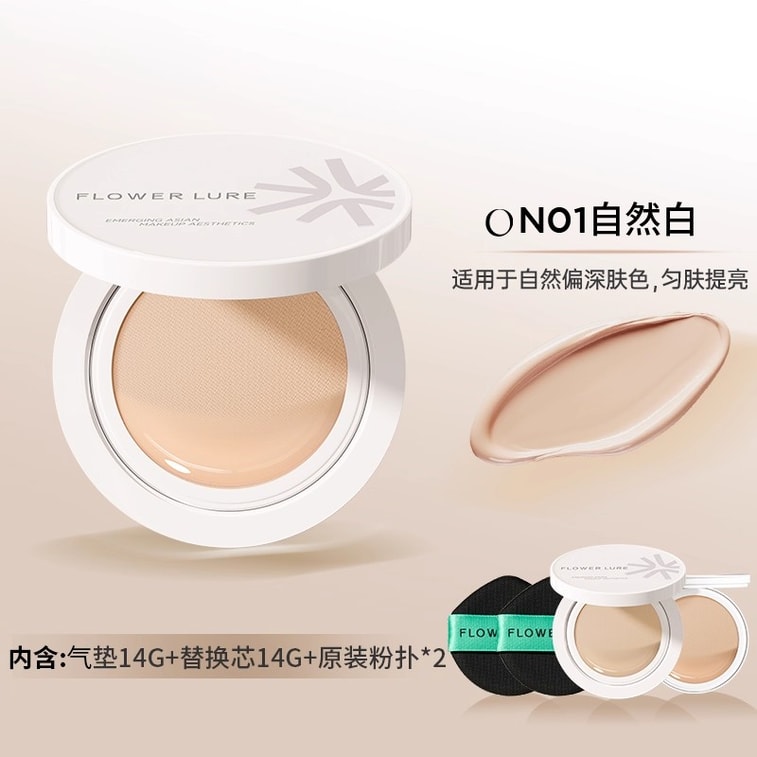 【中国直邮】 花间颂 晨雾贴贴气垫粉底霜 遮瑕持久保湿不脱妆粉底BB霜正品 自然色 正装+替换装【适合小麦偏黑肤色】