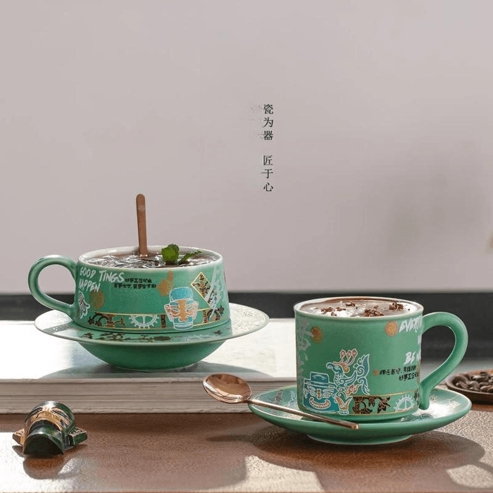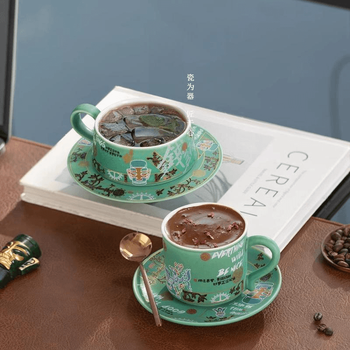 【中国直邮】 南山先生 星迹咖啡杯陶瓷水杯碟套装高颜值 多钱多福 63*128mm | 亚米