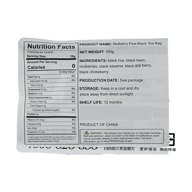 老金磨方 桑椹黑米黑豆黑芝麻黑枸杞 五黑茶 补肾固发黑发 10包入