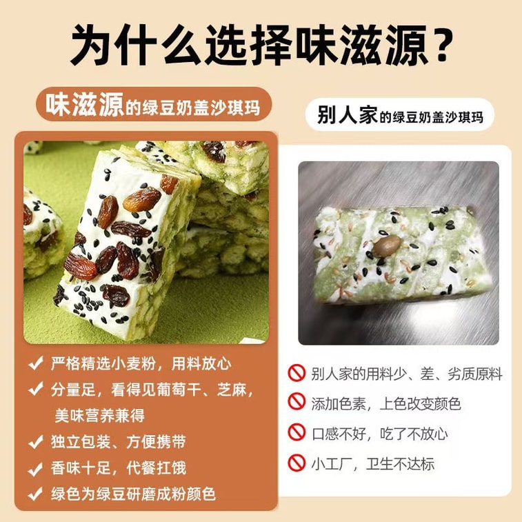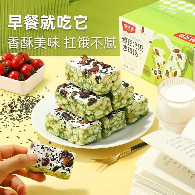 味滋源 绿豆奶盖沙琪玛 清新酥软 丰富果粒 奶盖浓郁绵密 好吃营养 210g 12块分装 袋装