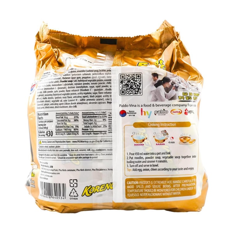 韩国PALDO八道 蘑菇汤面 速食方便面 100g*5连包