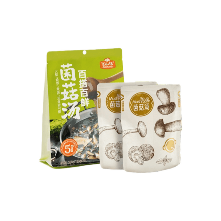 【中国直邮】 百山祖 菌菇火锅汤底 一人火锅小包装 菌菇味料包百搭百鲜菌菇汤 不辣火锅料底料 360g(内含2包)