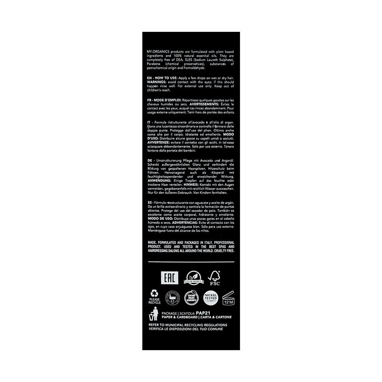 意大利MY ORGANICS 有机摩洛哥坚果油 烫染修复发油 隔热防护顺滑油 改善毛躁保湿柔顺护发精油 100ml 【章小蕙推荐】