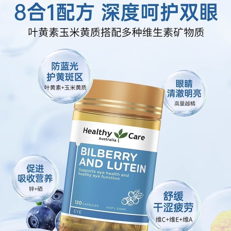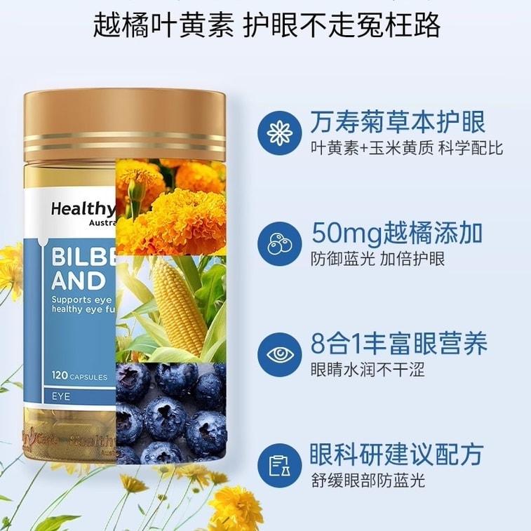 【中国直邮】 澳大利亚 Healthy Care 澳洲进口越橘叶黄素胶囊 儿童成人老年人护眼保护视力 120粒/瓶