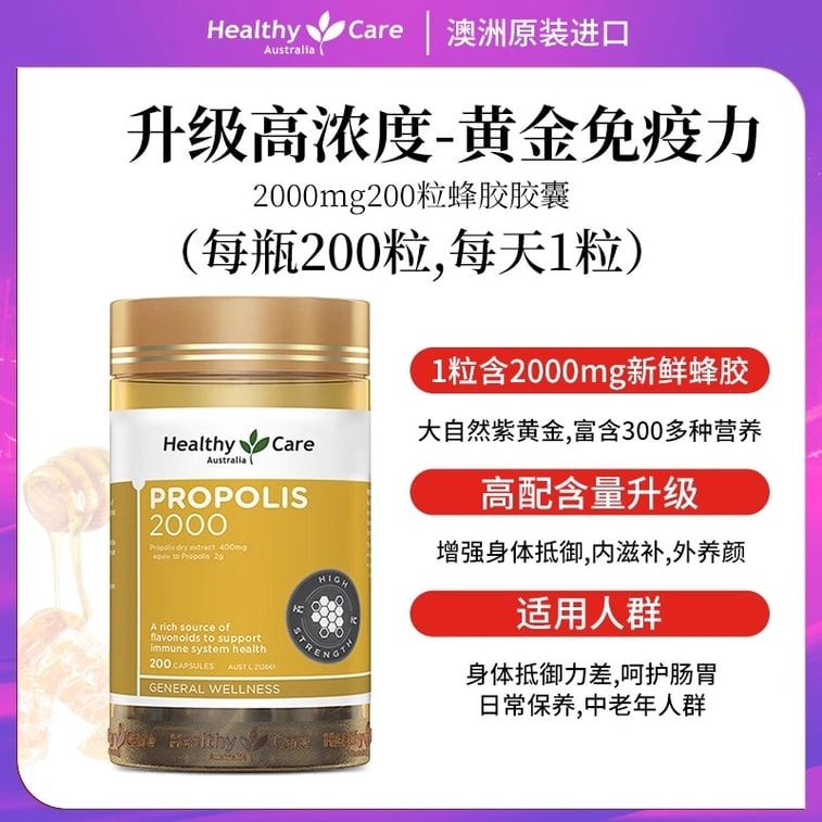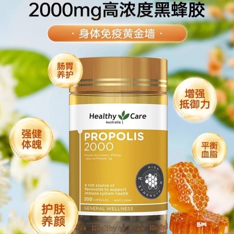 【中国直邮】 澳大利亚 Healthy Care 澳洲进口天然黑蜂胶软胶囊 中老年保健 200粒/瓶