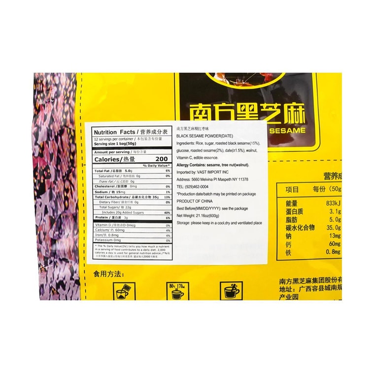 南方 黑芝麻糊 红枣味 600g