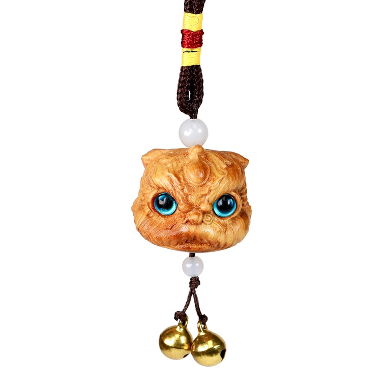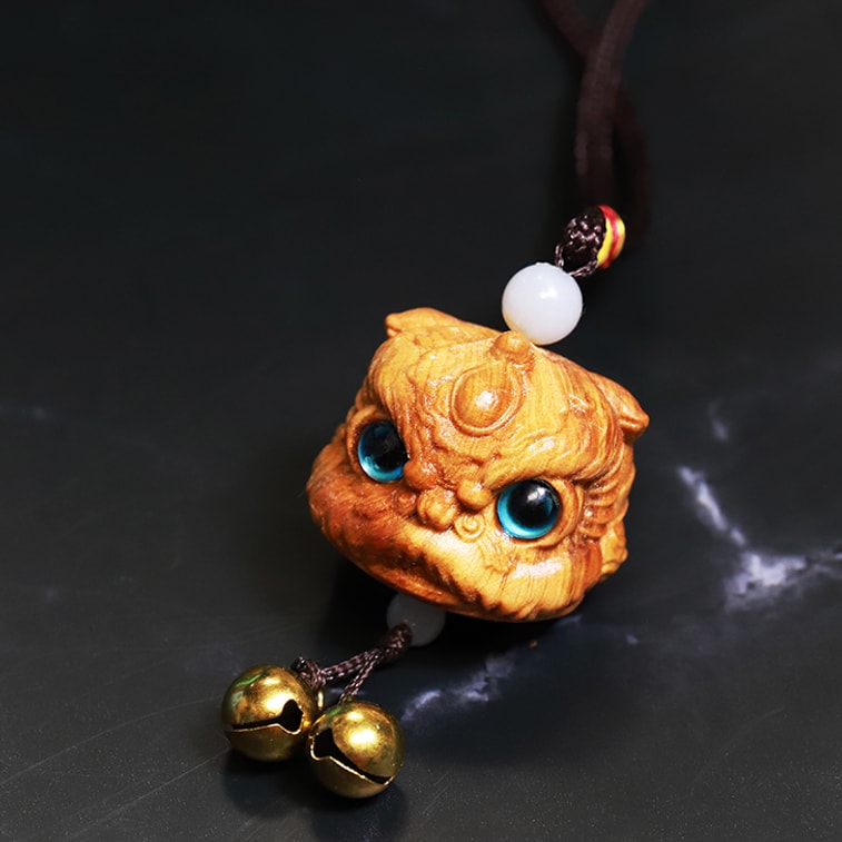 美国 GINKGOHOME 精美崖柏木醒狮雕刻铃铛车挂 幸运招财装饰品