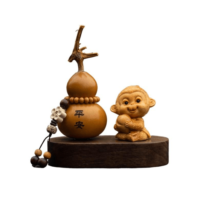 【中国直邮】 贝选优品 天然崖柏木十二生肖汽车摆件葫芦装饰香薰高档中式小礼物猴 约81g