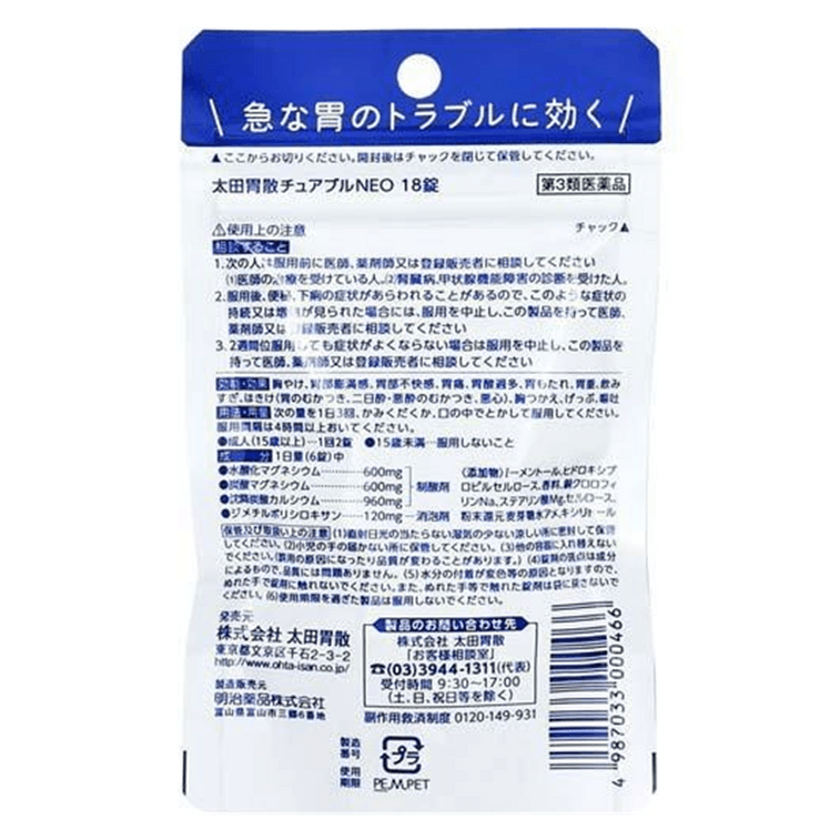 大泰山咀嚼片NEO是一种无需用水即可服用的咀嚼型胃肠道药物。