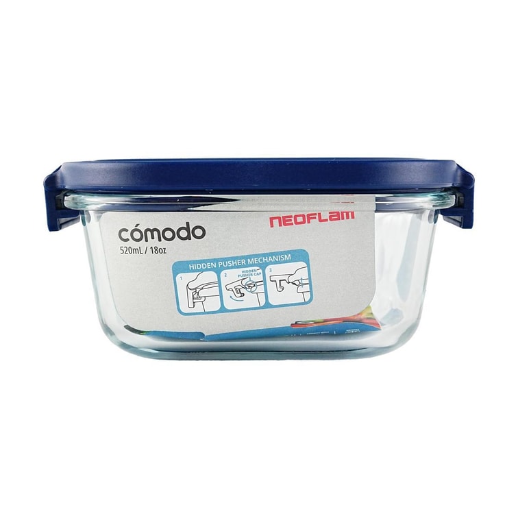 韩国COMODO 正方形玻璃饭盒 高硼硅耐热密封防漏保鲜便当盒 520ml