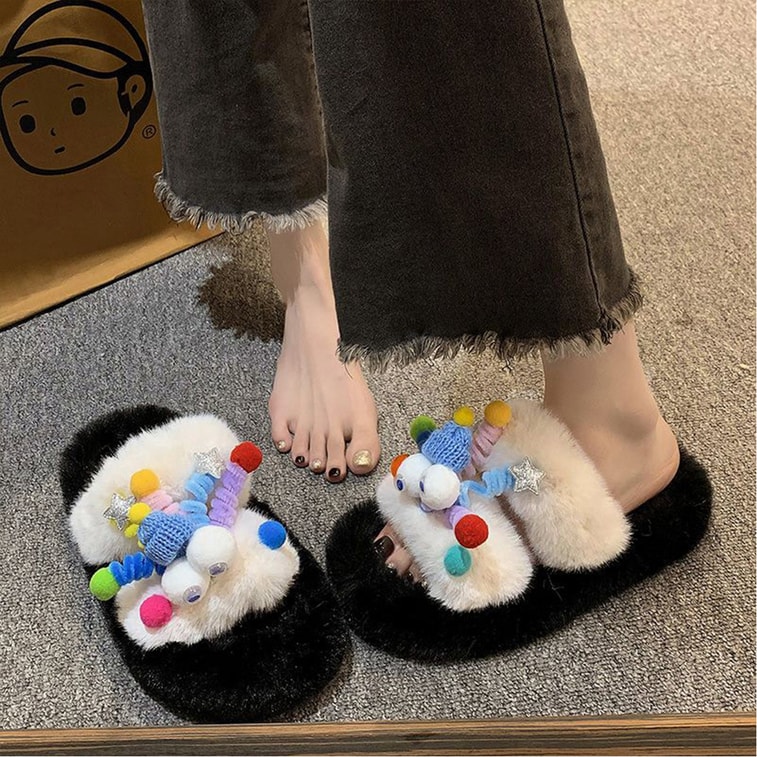 HSPM 新款小红书网红爆款卡通毛毛松糕居家防滑棉拖鞋办公室拖鞋一双装 米白色 39(39-40)