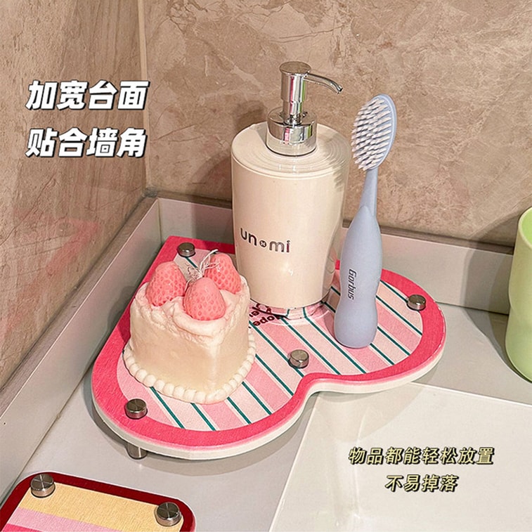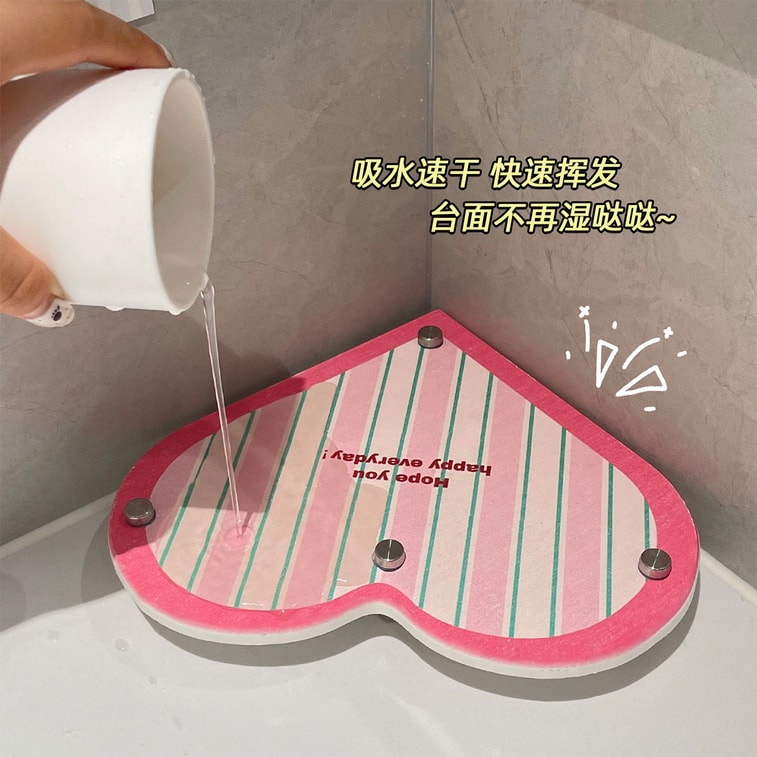 【中国直邮】 HSPM 新款硅藻泥吸水垫卫生间洗漱台转角爱心吸水垫置物架 粉白条纹 1个