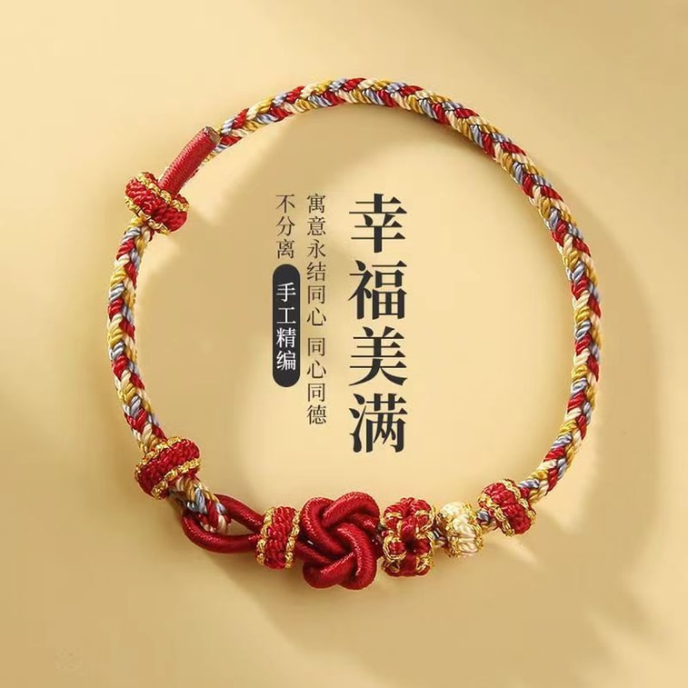 HSPM 新款手工编织转运珠八股绳手链可DIY黄金配饰送闺蜜圣诞新年礼物 喜乐红;手围17-19CM