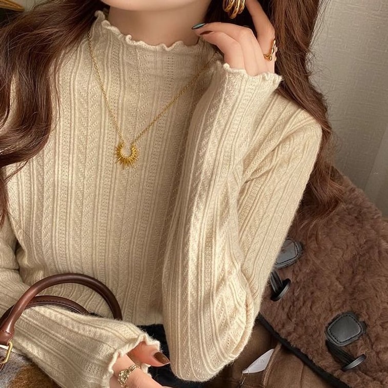 【中国直邮】 奢笛熊 早秋冬季新款时尚内搭 修身显瘦半高领打底毛衣针织衫 白色 S